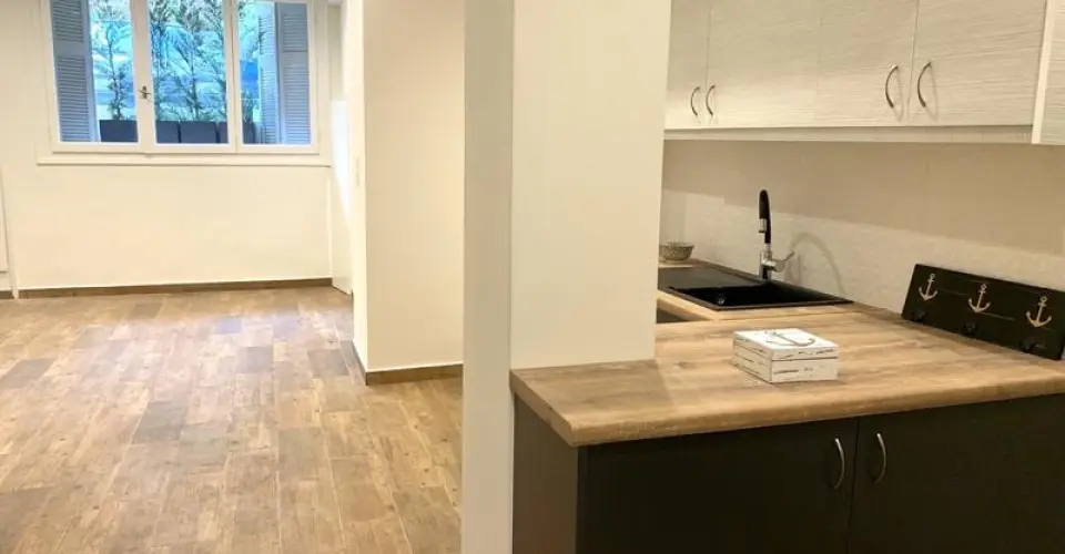 For sale is this renovated bright flat with 42 m² on the lower ground floor. ground floor. The flat was built in 1960 in Kolonaki -Lycabettus. and extensively renovated in 2020. A central heating with gas gas central heating provides comfortable warmth and a pleasant indoor climate.