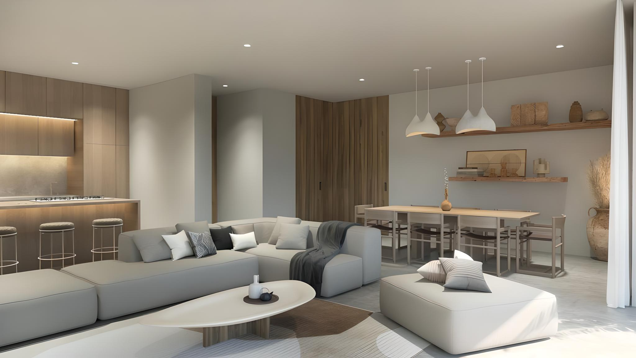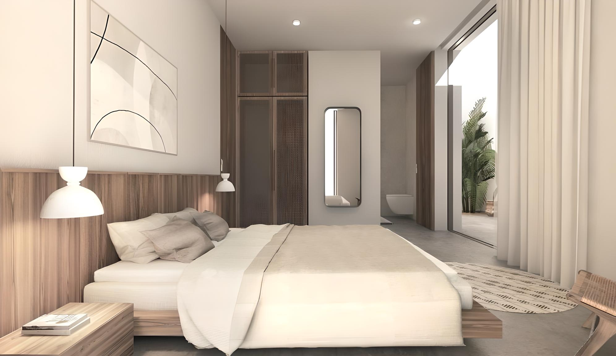 This subterranean villa - inspired by the natural topography - is being built using high-quality materials such as natural stone, exposed concrete and wood. It blends harmoniously into the Cretan landscape and creates flowing transitions between inside and outside. Three bedrooms are spread over around 199 m² of living space - each with its own bathroom, fitted wardrobes and private terrace. One of the bedrooms also has its own outdoor whirlpool area - ideal for relaxing with sea views.