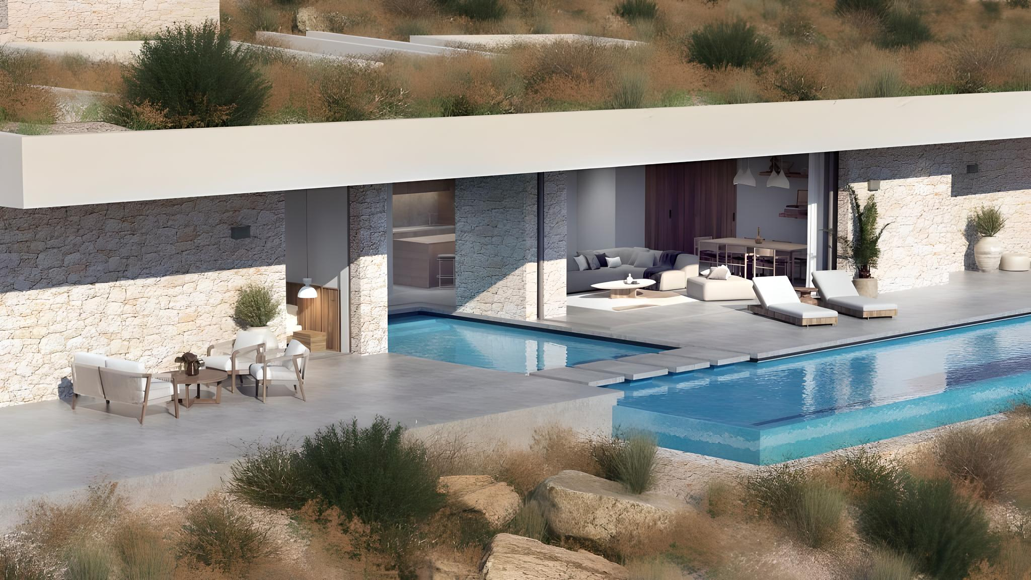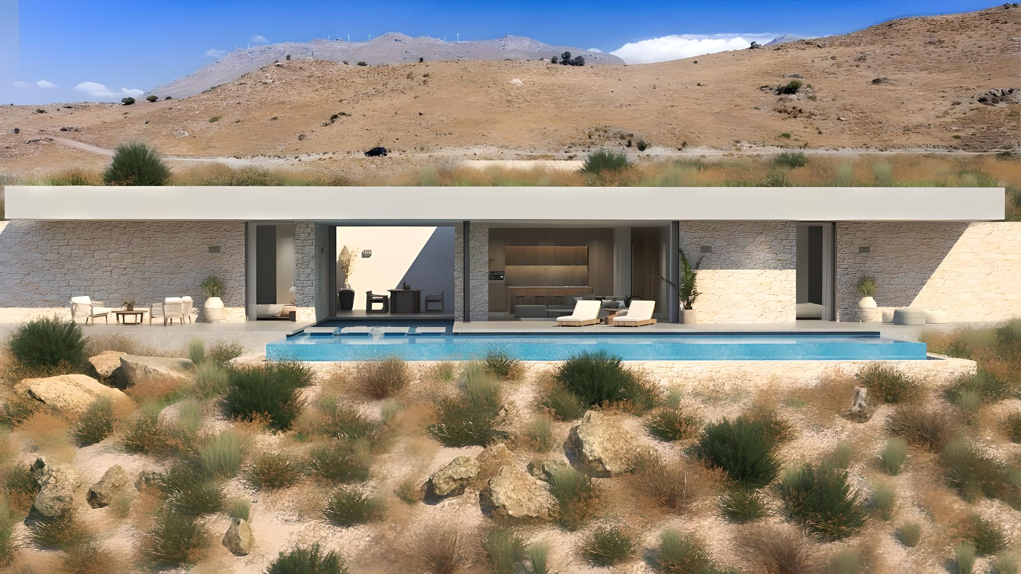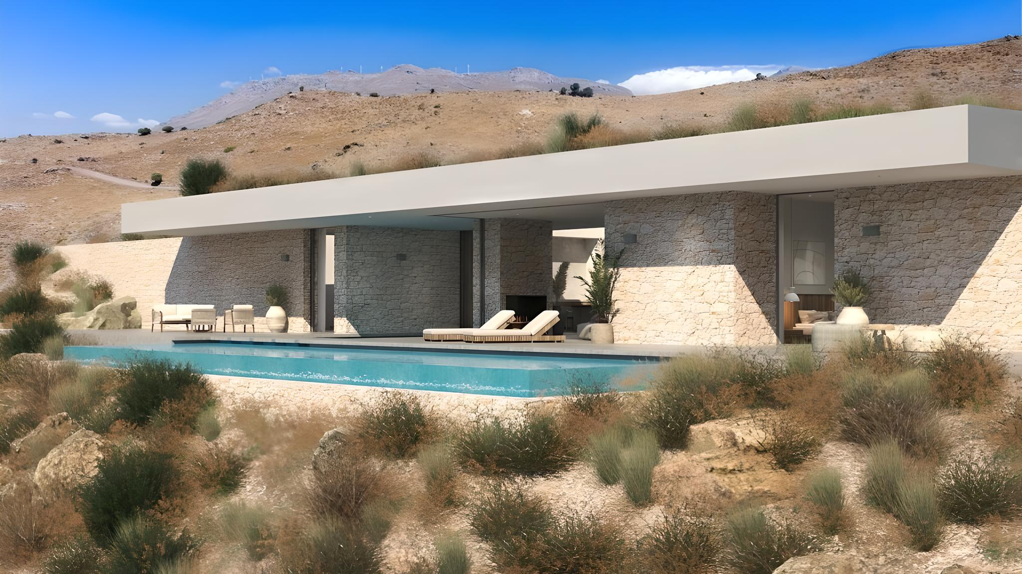 In the midst of the fascinating natural landscape of southern Crete, not far from the dreamlike bays of Agios Pavlos, an extraordinary new construction project is being built on a 4,492 m² hillside plot that ideally combines design, sustainability and comfort.