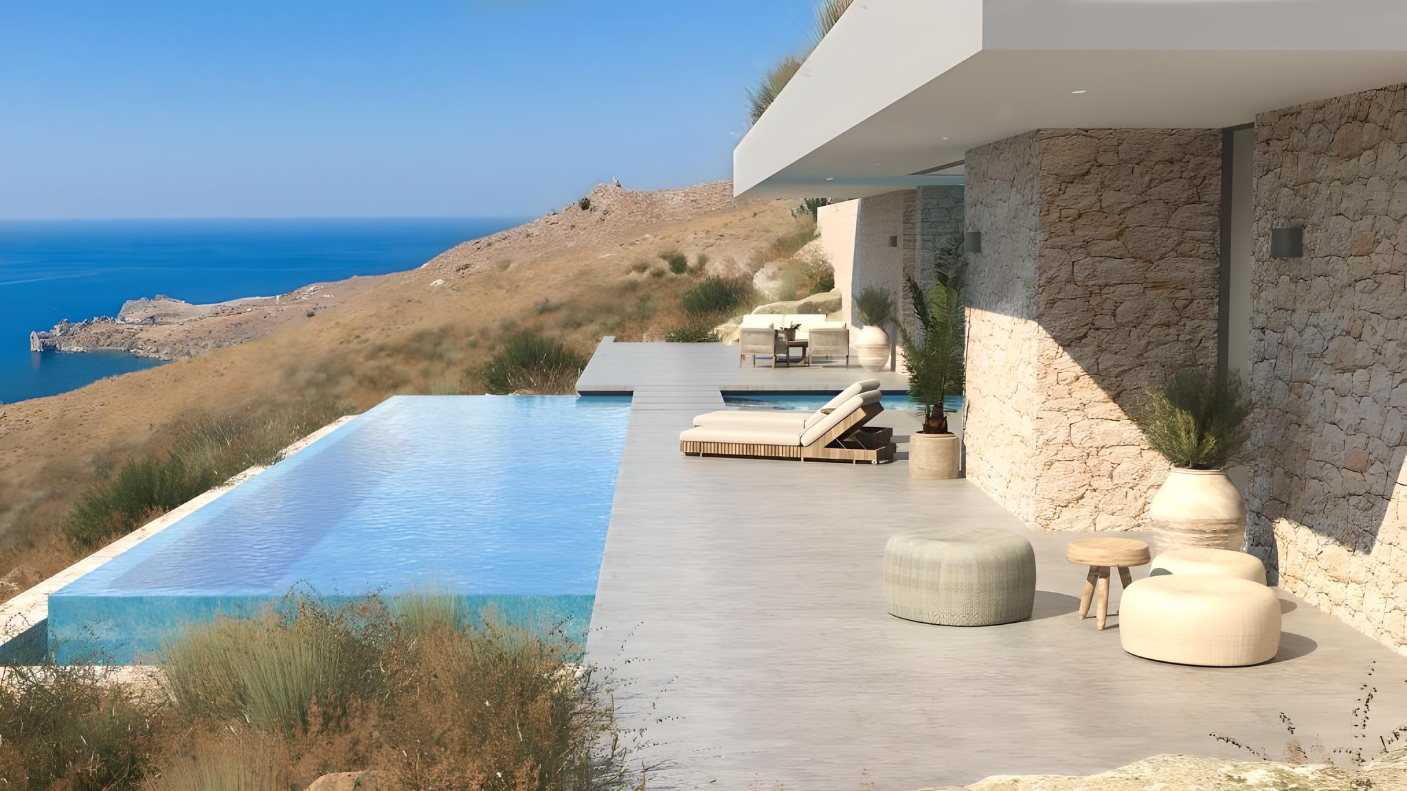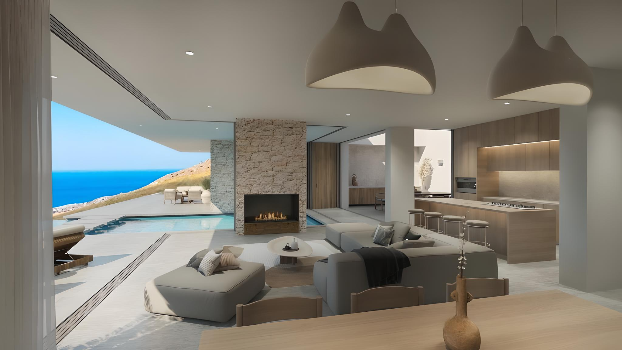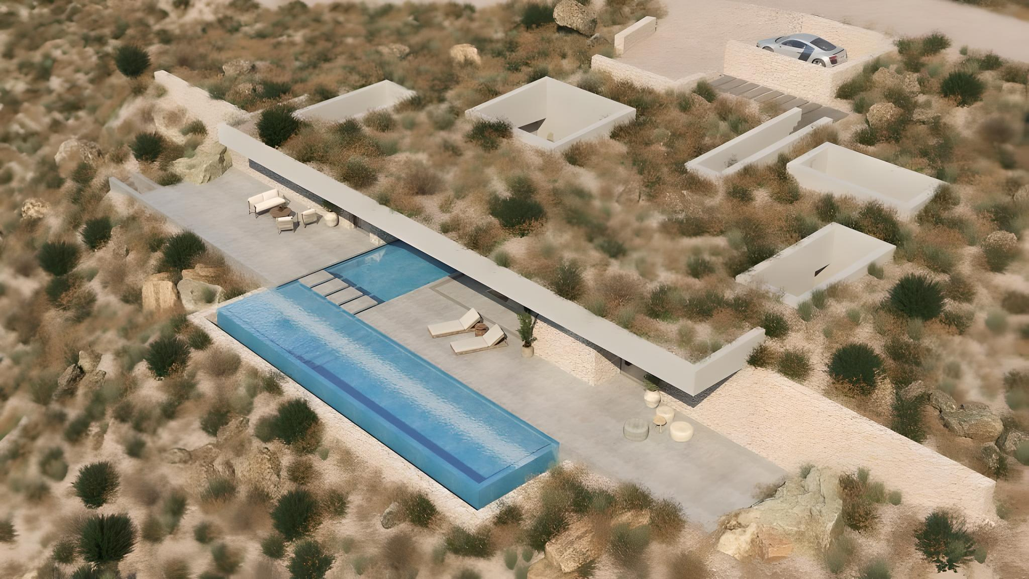 In the midst of the fascinating natural landscape of southern Crete, not far from the dreamlike bays of Agios Pavlos, an extraordinary new construction project is being built on a 4,492 m² hillside plot that ideally combines design, sustainability and comfort.